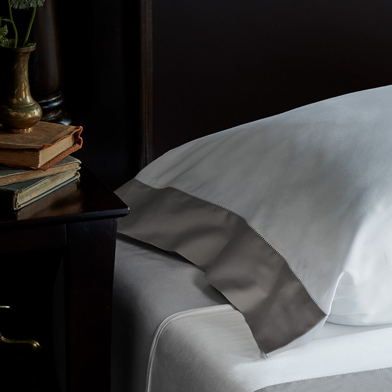 Elba bedding features 100% Supima® cotton, a premium fiber grown exclusively in the USA, to attain utmost quality and softness. The Elba Collection is trimmed with a distinctive hemstitch border, an intricate decorative detail. This sateen linen collection is known for its luster and drape, woven to create a silky smooth surface with a luminous sheen.
