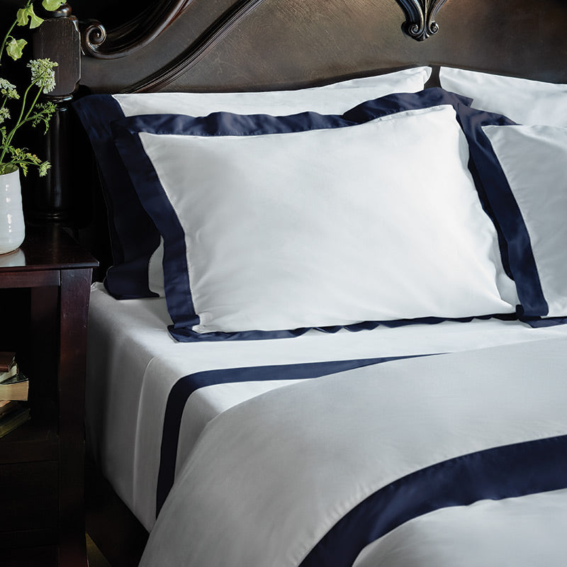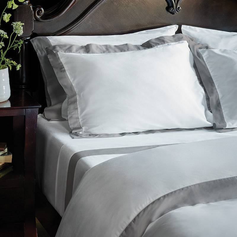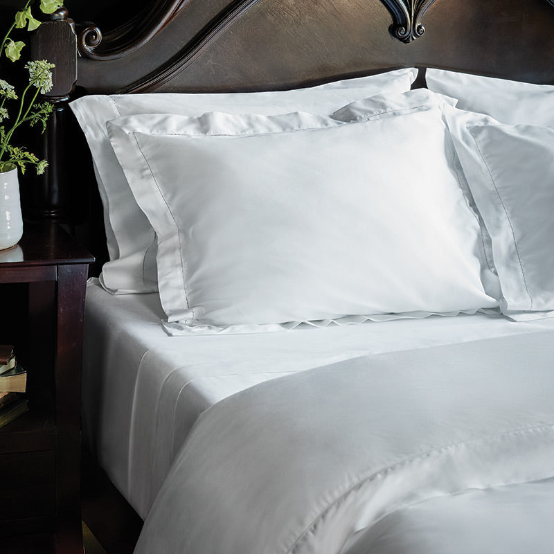 Elba bedding features 100% Supima® cotton, a premium fiber grown exclusively in the USA, to attain utmost quality and softness. The Elba Collection is trimmed with a distinctive hemstitch border, an intricate decorative detail. This sateen linen collection is known for its luster and drape, woven to create a silky smooth surface with a luminous sheen.